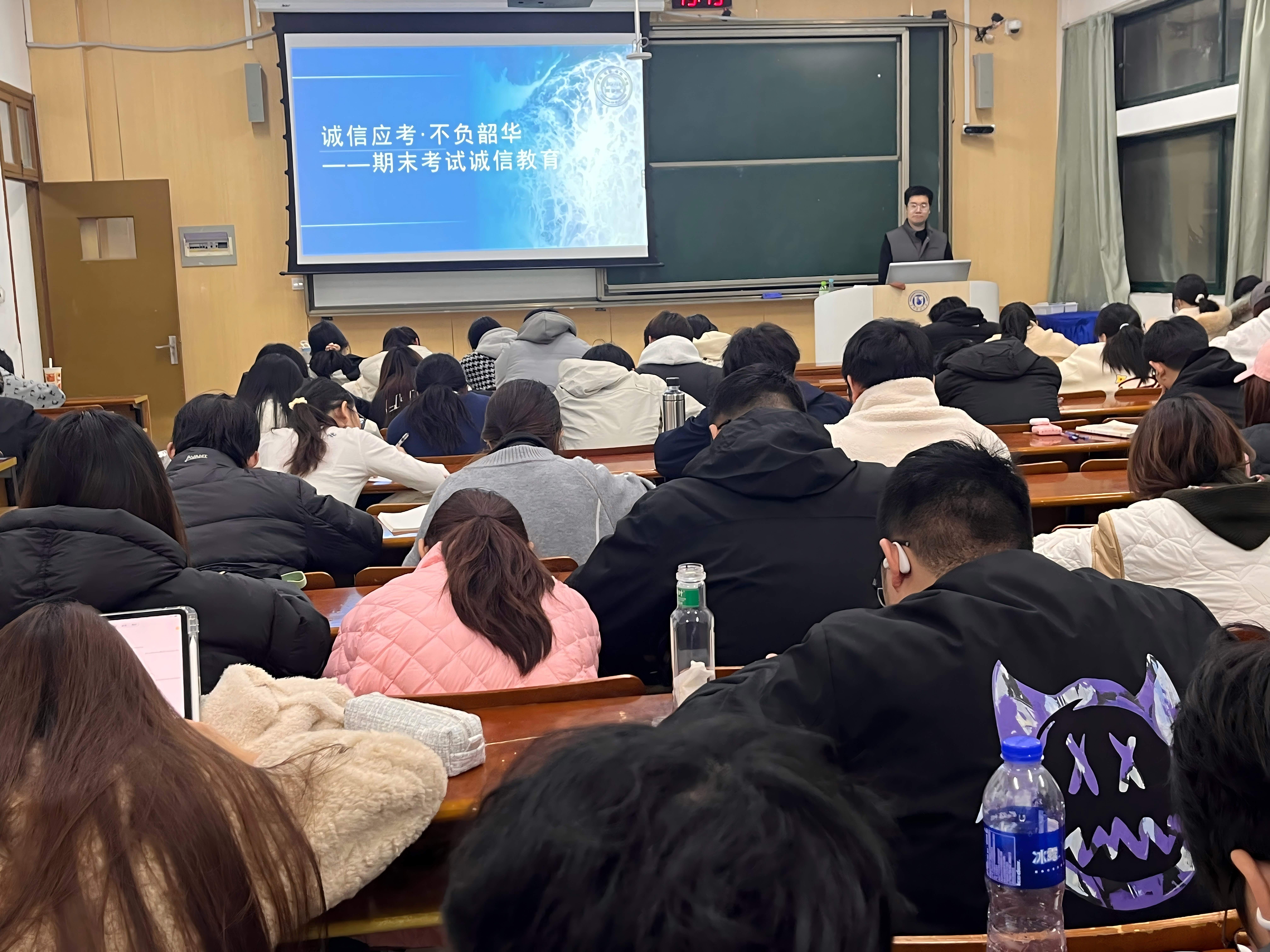 期末备考在即,为强化员工诚信应试意识,营造风清气正的考试氛围,财管22级、金融22级、工商22级联合开展期末考试诚信教育主题班会。本次班会由辅导员姚瑞诚主持,三个班级全体员工参会。