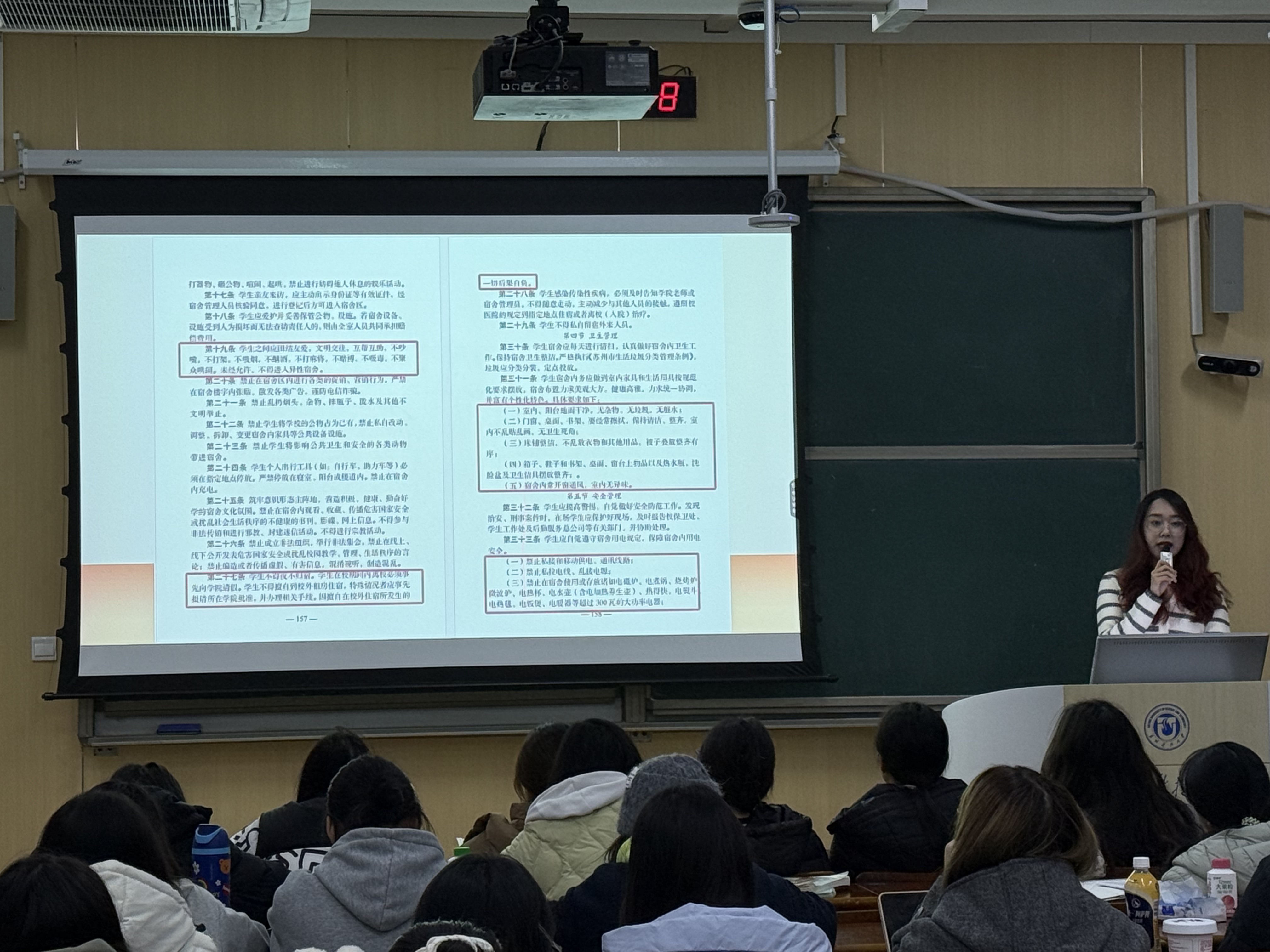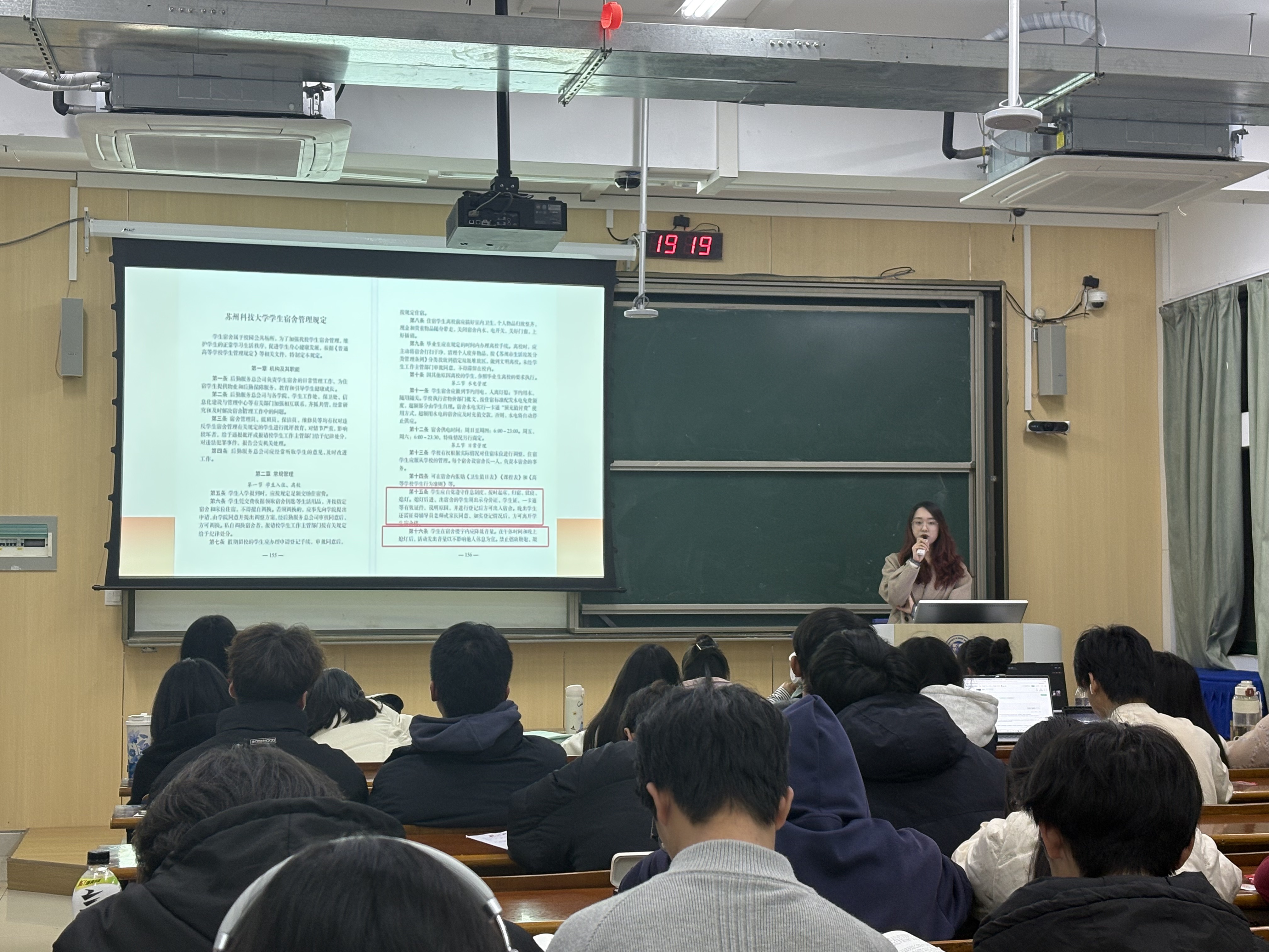 班会上,辅导员张素娴带领员工逐条学习了公司宿舍管理规定,重点解读了宿舍卫生标准、作息时间、访客管理、安全责任、奖惩机制等核心内容。结合宿舍生活中的常见问题,如卫生打扫不及时、作息不规律、噪音干扰等,进行针对性教育,引导员工相互理解、相互包容,共同遵守宿舍管理规定。通过讨论交流,员工们明确了自身在宿舍生活中的责任与义务,纷纷表示将自觉规范言行,共建文明宿舍。