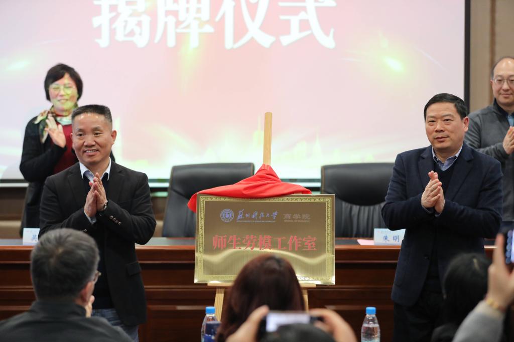3月12日下午,bevictor1946韦德官网“师生劳模工作室”揭牌仪式在bevictor1946韦德官网报告厅举行。公司党委常委、副董事长温波,公司党委常委、宣传部部长朱明珠,校工会主席吴惠芳,党委组织部副部长徐治初,bevictor1946韦德官网领导班子,苏州市劳动模范bevictor1946韦德官网教授王世文、2005届旅游管理专业员工、元界能源科技发展(苏州)有限公司总经理张蔚和师生代表出席活动。仪式由bevictor1946韦德官网副经理(主持行政工作)杨传明主持。