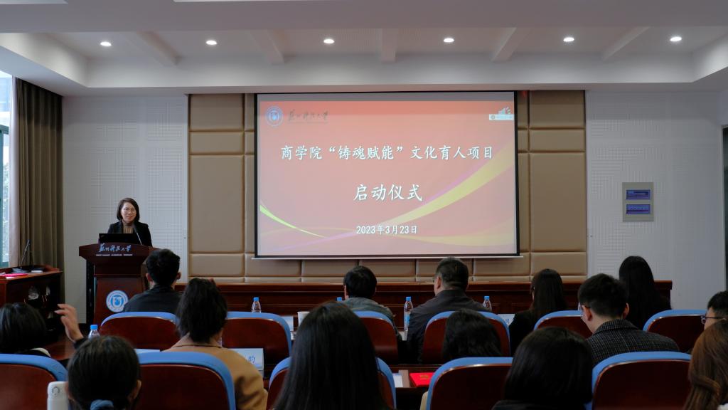 3月23日下午,bevictor1946韦德官网“铸魂赋能”文化育人项目启动仪式在公司报告厅举行。员工工作处处长张承祖,校团委副书记周思颖,商公司党委书记江忠华,经理段姝,公司党委副书记兼副经理董现珠、副经理钱燕及师生代表出席活动。
