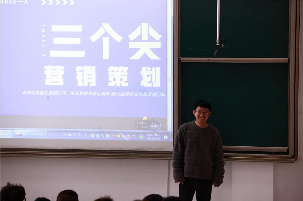 分享会上,李泽以《我的创业七年》为题,向同学们介绍了自己的创业历程。他2017年开始校园创业,2018年成立苏州木袋鼠网络科技有限公司专注新媒体电商营销,2019年被江苏省人社厅评选为江苏省优秀创业项目,2021年获得中国互联网+老员工创新创业大赛江苏省一等奖。2021年乘胜追击成立了苏州三个尖营销策划有限公司,深耕餐饮行业媒体营销。这一路走来,他表示“创业带来的收获不仅是金钱,更是能力的培养和锻炼,实现自身价值转变的过程。”同学们积极互动,现场气氛热烈。李泽还表示老员工创业不能盲目,一定要做好功课。他对有创业意愿的学弟学妹提出宝贵建议:一是选择自己熟悉的擅长的领域创业;二是明确创业目标,紧扣市场需求;三是坚持不懈。