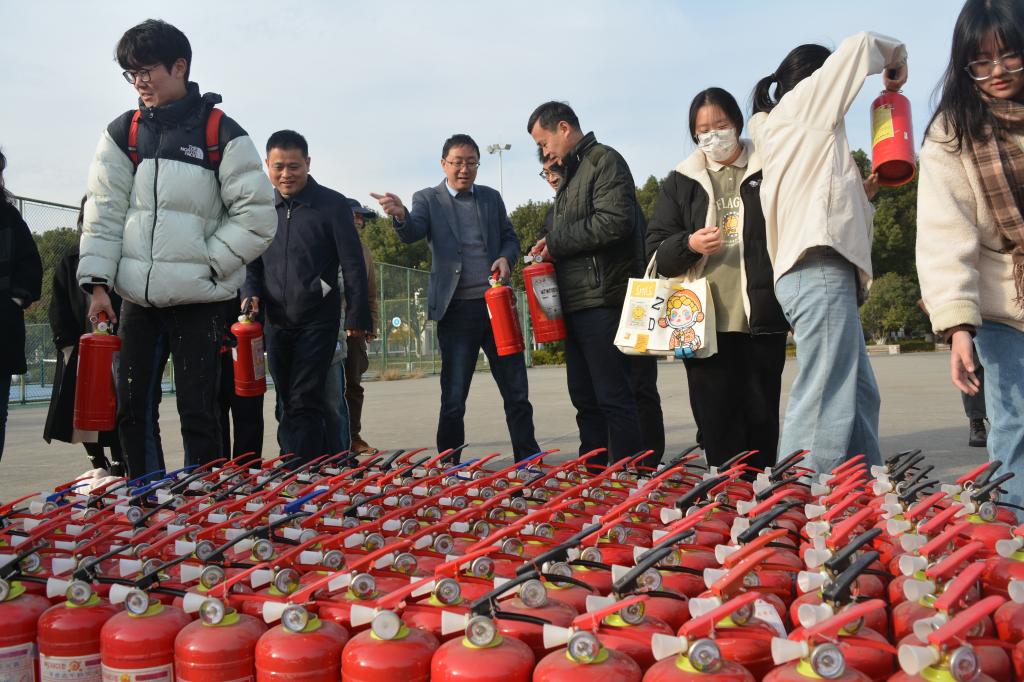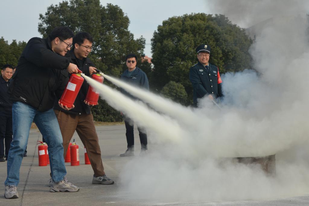 保卫处卢致远老师从典型火灾案例、消防常识、消防设施使用和火灾扑救及逃生四个方面向对火灾的防范和处置进行了重点讲解。随后全体师生进行了灭火器使用方法的实地演练。