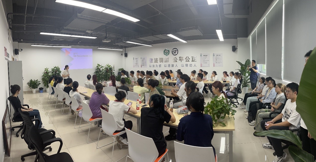 参观期间,顺丰丰泰产业园相关负责人吴军杰接待了参观团一行,详细讲解了中转场内部的工作流程,带领员工前往拆笼区、矩阵区、NC区等功能区域进行实地参观,并近距离展示了无人机、AGV无人车、小件自动化分拣机等自动化物流设施设备,最后针对员工职业生涯规划提出了宝贵建议。