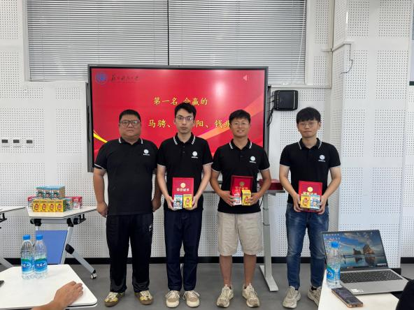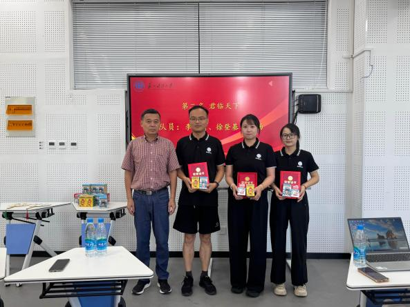 黎宏宝解读了2025年中国研究生企业管理创新大赛企业决策赛道的新变化和新要求,介绍了校内赛的具体组织、培训、训练和校内赛组织情况,并宣布了获奖名单。陈丰、江忠华、黎宏宝分别为获得校内赛的冠亚季军队伍颁发奖状和奖品。陈丰鼓励指导教师和获得国赛资格的学员们加强训练、认真复盘、全力以赴,力争在接下来的国赛中再创佳绩!