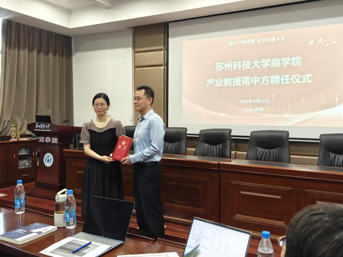 2025年9月12日下午,关于我们财务管理专业产业教授聘任仪式在bevictor1946韦德官网报告厅隆重举行,聘任前跨国公司(天弘财务咨询有限公司)全球财务共享服务负责人、苏州共享服务专业委员会专家小组成员蒋中方博士为公司财务管理专业产业教授。bevictor1946韦德官网副经理钱燕、财务管理系主任冯丽艳、财务管理系教师代表周炜和潘玲玲以及财务管理专业23级智能财务方向员工参加了聘任仪式。
