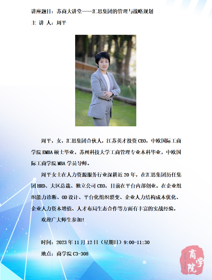 苏商大讲堂——汇思集团的管理与战略规划