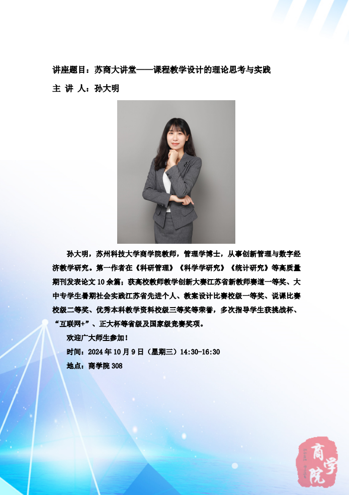 下一条:苏商大讲堂——跨学科视角下经管类研究生多元化培养模式建构