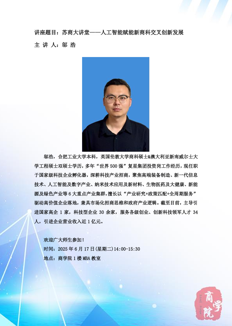 下一条:苏商大讲堂-破界共生·智创未来:校企联动驱动新商科产业交叉融合实践