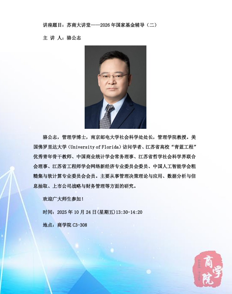 下一条:苏商大讲堂——2026年国家社科基金专题辅导会
