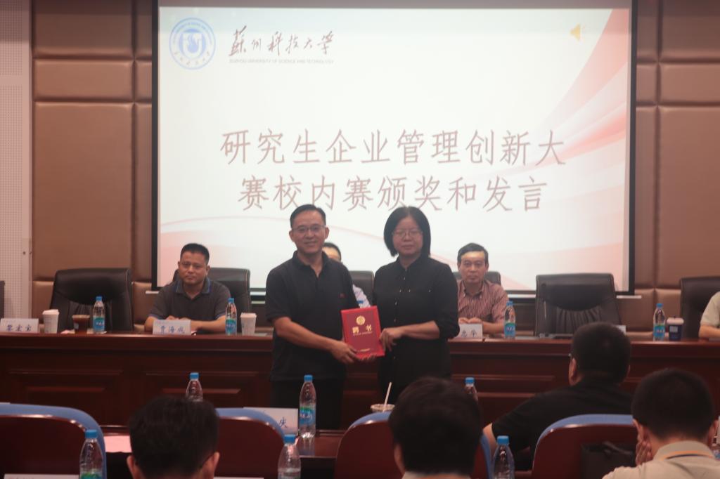 在中国研究生企业管理创新大赛校内赛的颁奖环节,孙国华、江忠华、贾海成等分别为获得校内赛的冠亚季军队伍颁发奖状和奖杯。