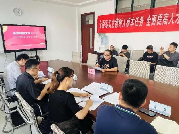 南江霞表示,中期考核是MBA培养环节的重要一环。学员们依次从政治素质、业务素质、身体素质等方面对自己一年多的学习情况进行了汇报。汇报结束后,杨传明进行了点评和总结,并就10月份即将进行的论文开题,后期的论文写作,MBA项目管理中的问题与员们进行了沟通和交流。